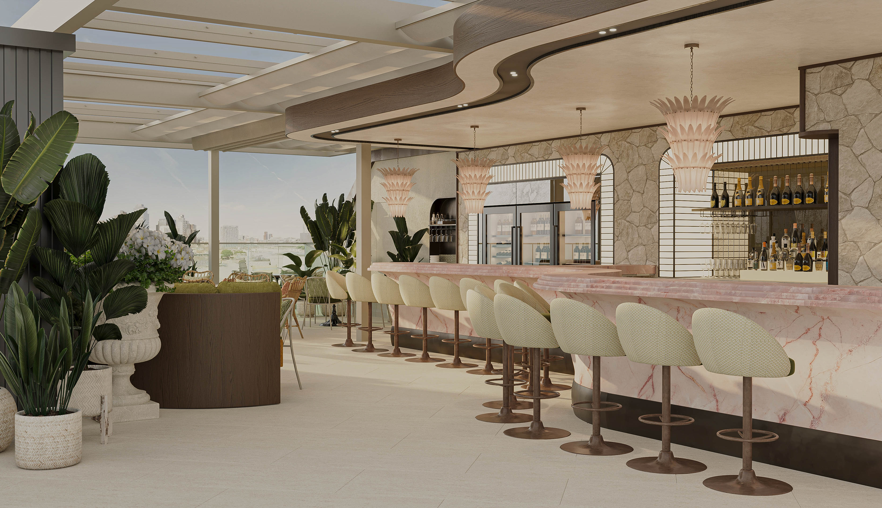 Rooftop wine bar and restaurant in Olympia serving British small plates and an extensive menu of English sparkling wine.